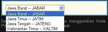 <option value="JABAR" >Jawa Barat -- JABAR </option>